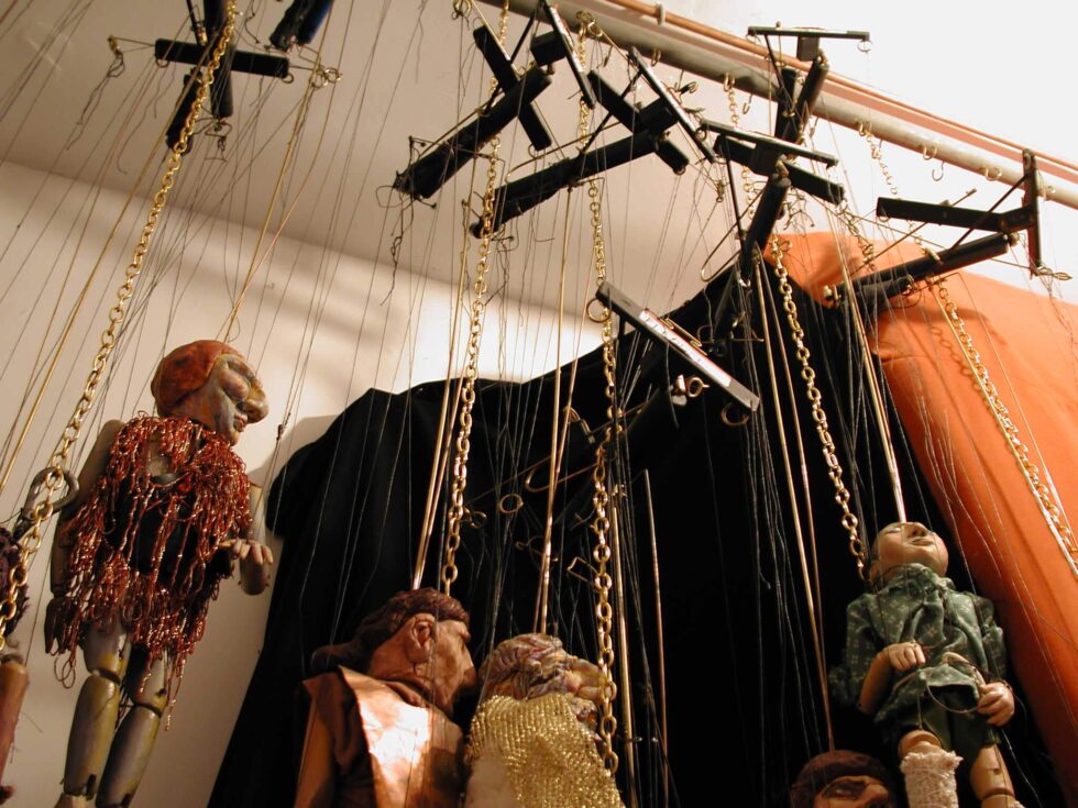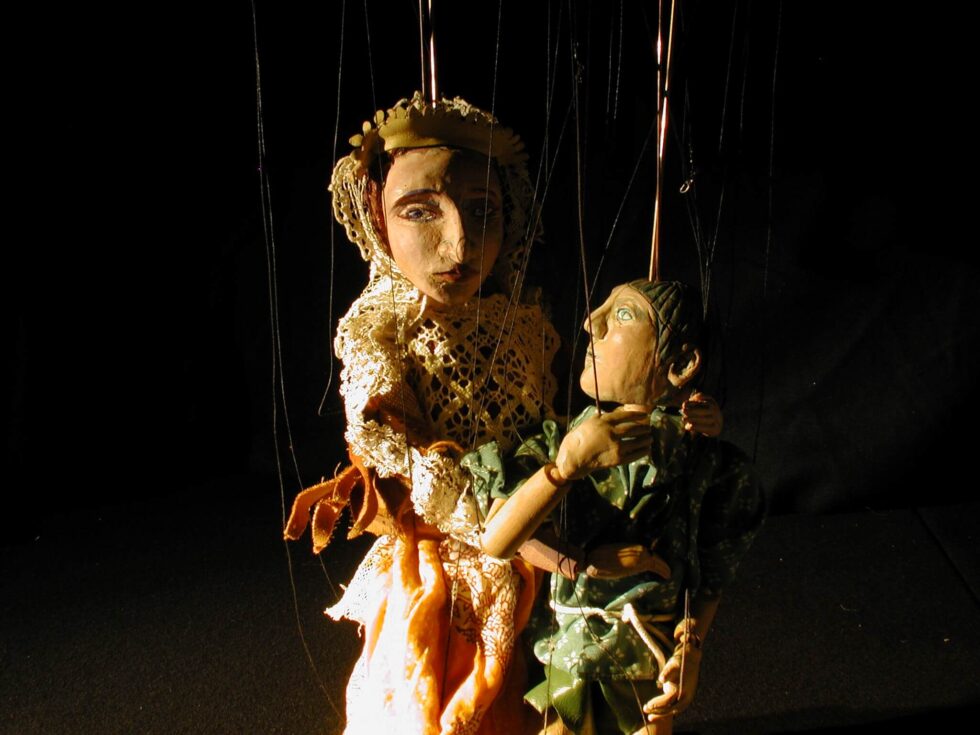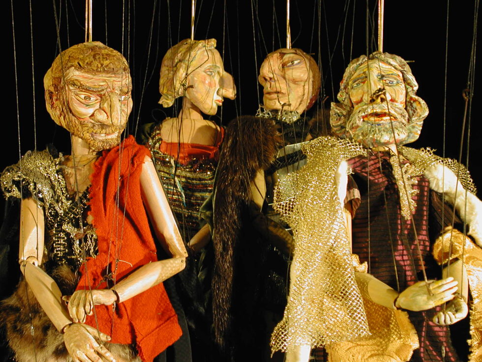 As an extension of her artist-in-residence experience at the Royal Shakespeare Company (RSC) in Stratford-Upon-Avon, England, Kathleen founded the Shakespeare Marionette Company in the early 1990s in Shipston-On-Stour, England. Working with woodworking craftsman, Paul Furniss, Kathleen built and clothed marionettes for the Shakespearan productions of both Macbeth and Midsummer Night’s Dream. With the assistance of former RSC’s Collection Director Brian Glover, Kathleen and Paul traveled throughout Europe with these marionettes and a portable traveling stage to perform before live audiences of young children and adults.